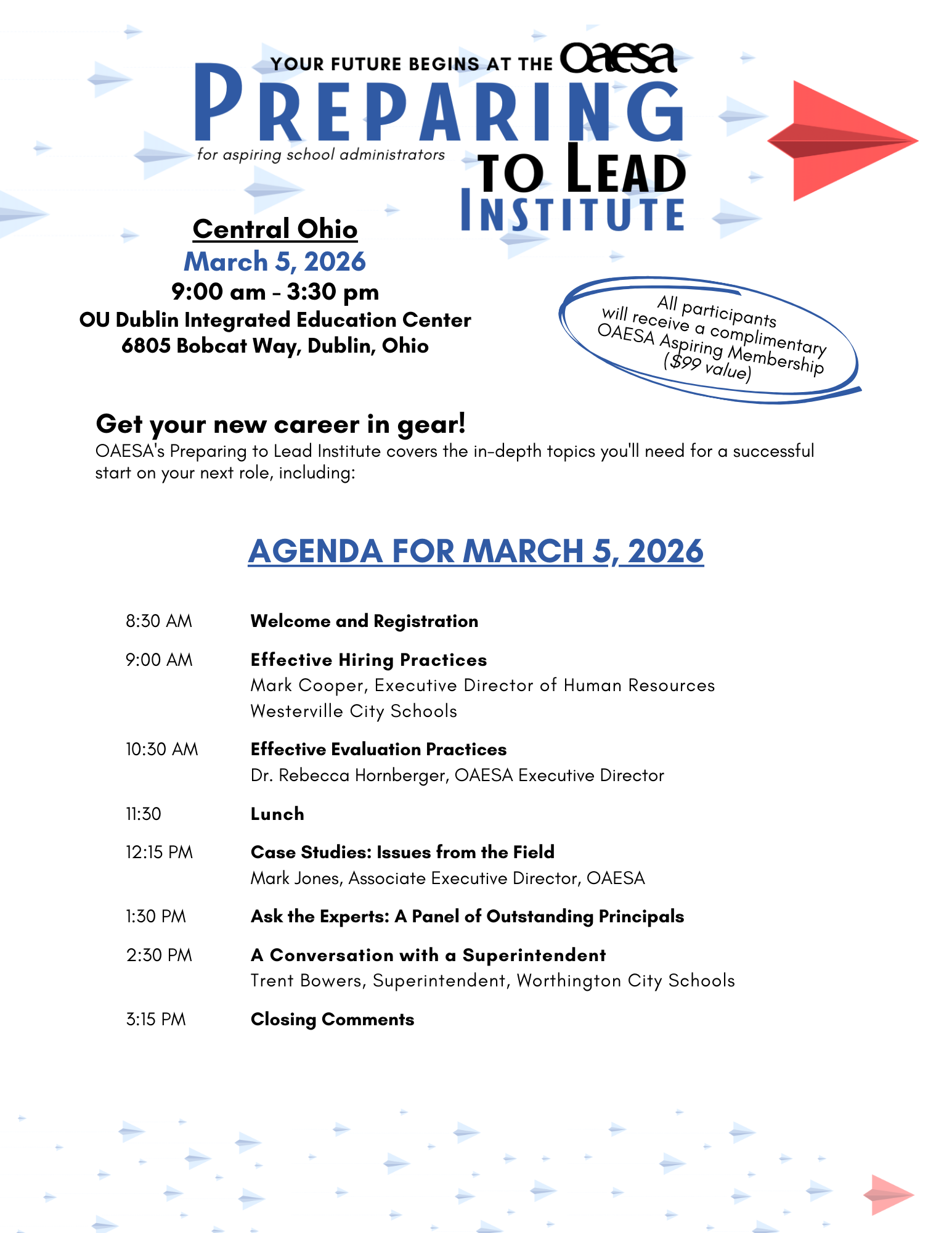 Get your new career in gear! OAESA's Preparing to Lead Institute covers the in-depth topics you'll need for a successful start on your next role. Topics include maneuvering the hiring process, examining case studies from the field, understanding administrative contracts and much more!